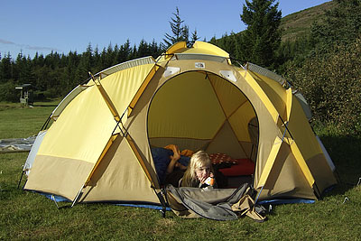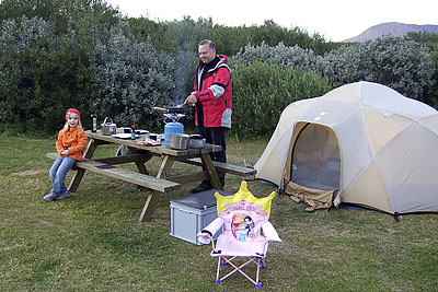 From there we went to the beautiful Hjálparfoss and via the 30, 35, and 37 to the Laugarvatn campground. Contrary to the description in several guidebooks, this campground has rather primitive facilities with just two toilets and cold water. In the meantime, the weather had improved significantly. During dinner at the campsite, we were again blessed by bright sunshine.