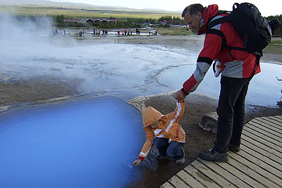 After a nice breakfast, we went to the geyser Strokkur in Haukadalur. The Strokkur erupts every five minutes with a 20-30 m high fountain. From the Stora Geysir, the namesake for all the geysers in the world, there was little to see, however. He is now only rarely active. We spent some time at the geysers and really enjoyed to watch this fascinating spectacle in bright sunshine.