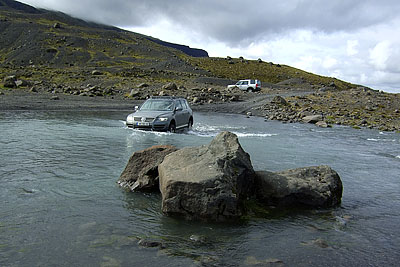With the exception of the two fords, the Sprengisandur (F26) is easy to drive and leads through great scenery. In this huge desolated desert you can often see bright moss-lined rivers and in the background Europe’s largest glacier, the Vatnajökull. The Sprengisandur is highly recommended, just be careful with the fords.