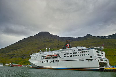 Our last day in Iceland began with a nice breakfast in the Egilsstaðir Guesthouse. After we had spent our last few Icelandic crowns in a supermarket, we drove to Seyðisfjörður. On the way to Seyðisfjörður, we had only 2°C and dense fog. Somehow it was getting more and more uncomfortable in Iceland. When we arrived there, the Norröna was already there. After a short walk through the town, we went to the ferry. We enjoyed the ride through the east fjords of Iceland on the sheltered terrace of the upper deck of the Norröna.