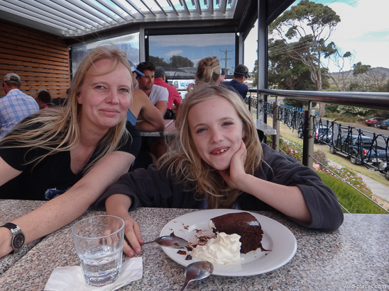 For breakfast we went to the Binalong Bay Café where we had some tasty crab omelet and eggs Benedict and of course afterward the obligatory birthday cake.