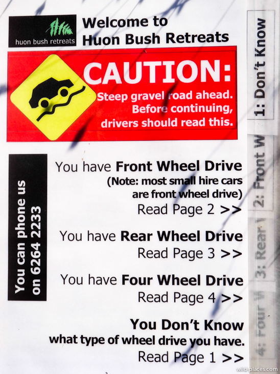 At the entrance, we found a big stop sign and a small book with some very detailed explanation of how to drive on the steep gravel road to the reception.
