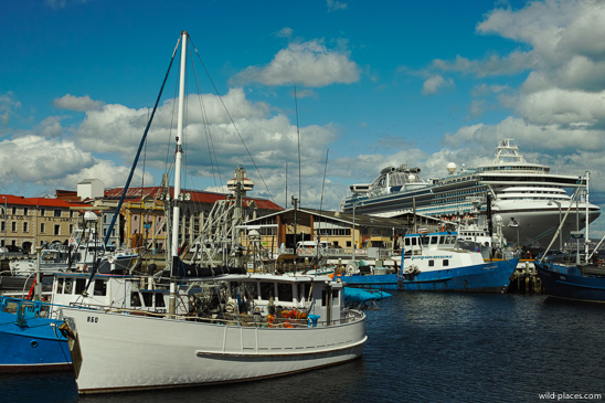 It was sunny with temperatures around 30°C. We had some ice-cream at the wharf and then walked to Salamanca Square where a lot was going on. All the bars had opened and were playing cool and loud music. Dressed up hip people were dancing on the streets. All the noise and hurly-burly was at first a bit confusing after four weeks in the wilderness. But we quickly enjoyed city life again. Several women in evening dresses and men in suits were laying on the meadows with cocktails in their hands and listening to live music. Very cool! Our impression of Hobart changed completely compared to our first visit before Christmas. Hobart is now one of my favored cities in the world and I would love to live there.
