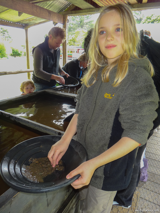 Along the railway, the train stopped at several historic stations and mining towns and we got some interesting explanations about the history. At one station you could pan for gold which was great fun for Linnéa.