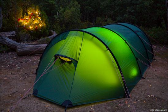 Before we went to bed we enjoyed our illuminated Christmas tree in front of our tent.
