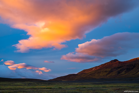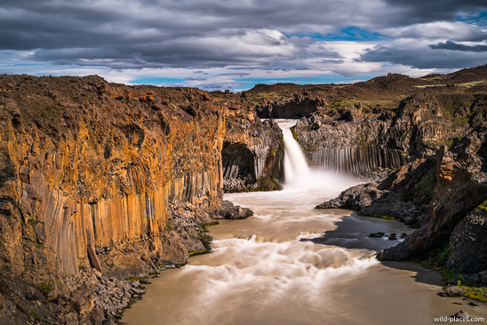 After two nights at the Ásbyrgi campground, we took the F862 and 843 to the Sprengisandur (F26). Since we had been many times at Mývatn and Goðafoss we didn’t stop there this time but instead went directly to the Aldeyjarfoss to shoot it from both sides of the river at sunset. Afterward, we spent the night at the always very windy and cold Nýidalur campground on the Sprengisandur.