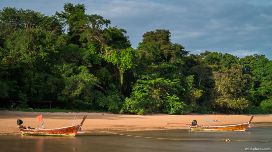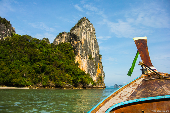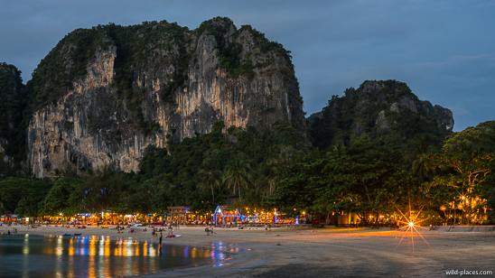 One of the most beautiful beaches in the Krabi area is Railay Beach. It can be reached only by boat. Railay Beach has actually three beaches which are connected by short walking trails. We stayed at Railay West, where most of the hotels are located. It’s a lovely sandy beach with spectacular mountains in the background. It is often a bit crowded, but the mix of package tourists, families, backpackers and climbers (Krabi is a climbers paradise with countless routes) can be fun to watch for a couple of days. And as a side effect of the popularity of this beach you have many nice restaurants to choose from.