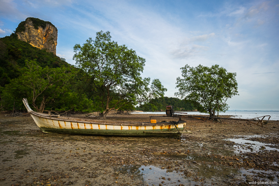 A short walk away from Railay West is Railay East. A muddy mangrove beach, but less crowded and with cheaper hotel options.