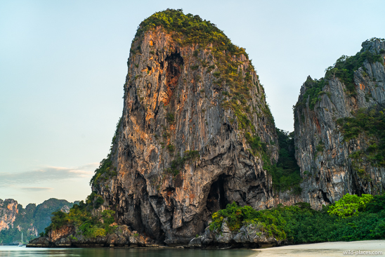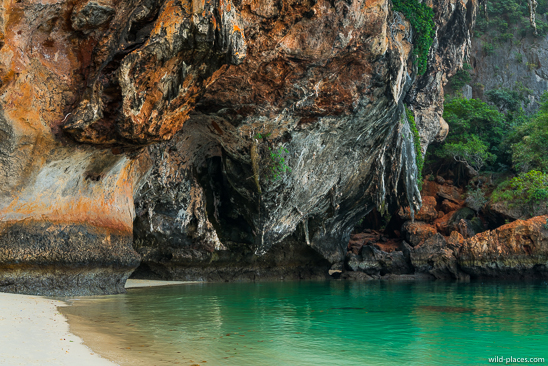 From Railay East you can easily reach Hat Phra Nang. This is the most beautiful of the three beaches. There is only one hotel located at this beach, the Rayavadee luxury resort. Extremely expensive, but according to the available reports and ratings on the net worth the money. During the day the Phra Nang Beach is typically also very crowded, but if you arrive early (or stay there after sunset) you are pretty much alone there.