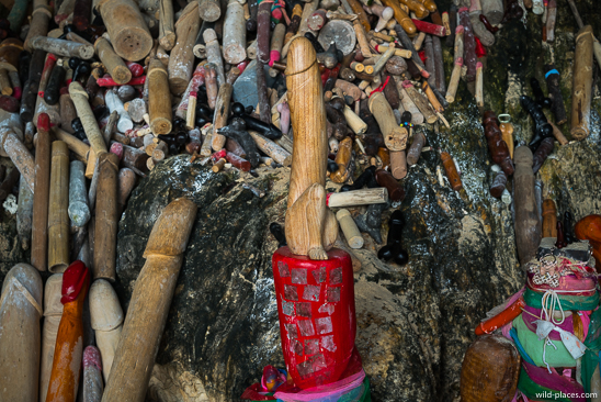 At the end of the beach, you can find an unusual shrine in a small cave. Local fishermen believe that offering a phallic symbol will result in a good catch.