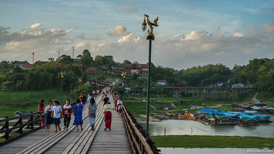 One of the most beautiful bridges in Kanchanaburi is the Mon Bridge in Sangkhla Buri near the Three Pagoda Pass close to the border Myanmar.