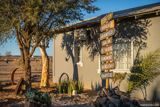 At the gate of the Namtib farm was a large sign that guests without prior reservations are not welcome. So we went on to Koiimasis.