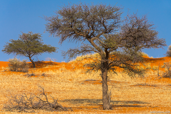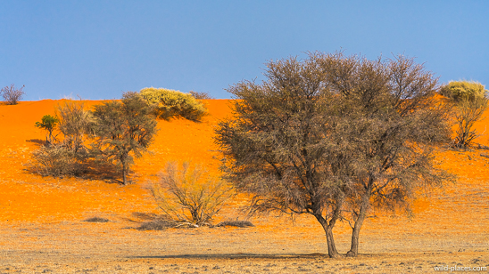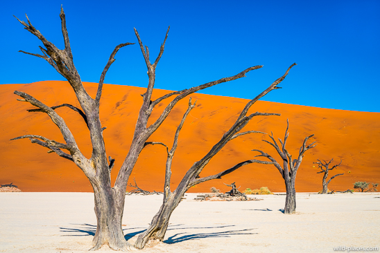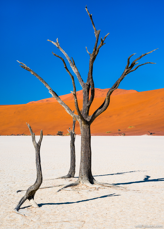 For photography in Sossusvlei, my favorite place next to Deadvlei is the area between the 2WD and the 4WD parking lots. There are many interesting shaped trees with lovely dunes in the background. In addition, there are often quite a few Oryx antelopes which can act as a nice foreground in landscape images.