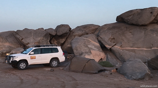 Here is a picture of our rented Landcruiser in front of Spitzkoppe: