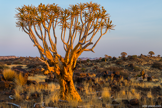 On the site, many quiver trees were spread around. The “forest” was not quite as dense as the official quiver tree forest close to the city of Keetmanshoop, but in my opinion, Mesosauras was even more suitable for taking images of quiver trees.