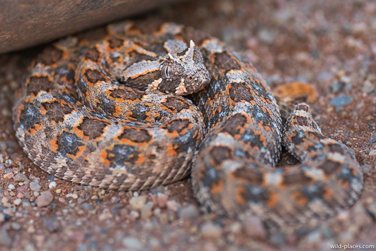 Directly in front of the Sesriem campground we found a beautiful horned puff adder (Bitis caudalis):