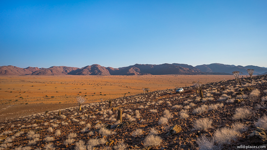 The next day we explored the area with our Landcruiser. The landscape is just awesome there. Directly behind the farmhouse is a small hill where you can drive up and have a fantastic view over the surrounding area including the Tiras Mountains. We enjoyed the sunset from up there.
