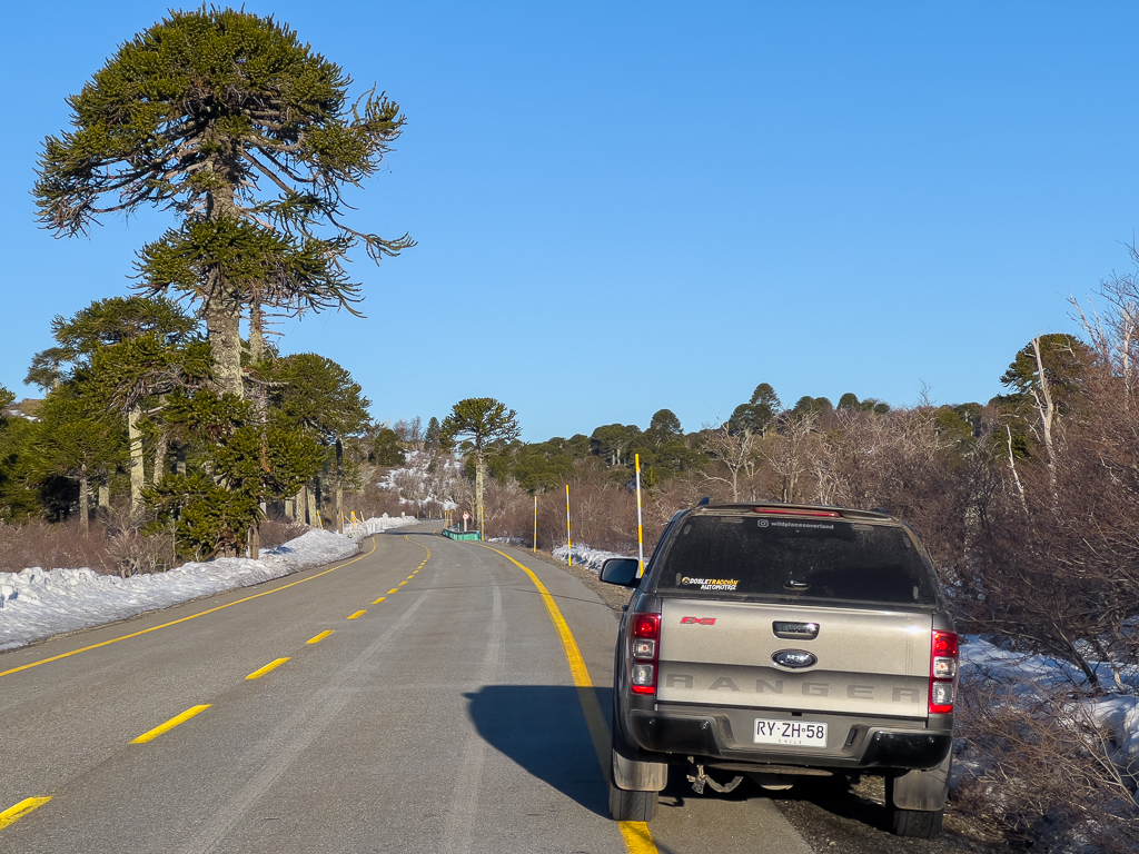 On our last day in Pucón we did a trip to the Paso Tromen Ó Mamuil Malal. This road leads through the Parc National Villarica to a border crossing with Argentina. The landscape in the national park is very beautiful.