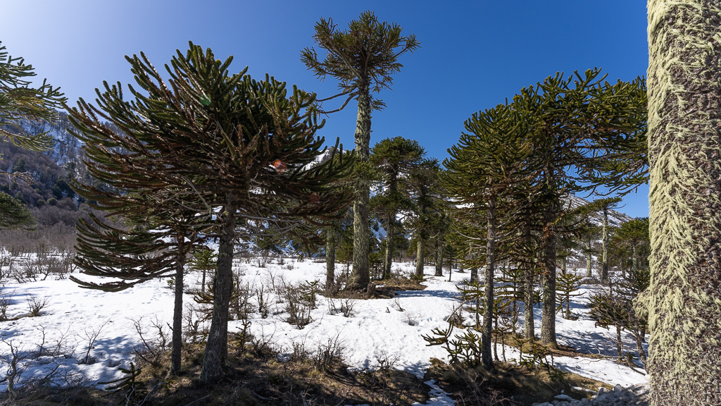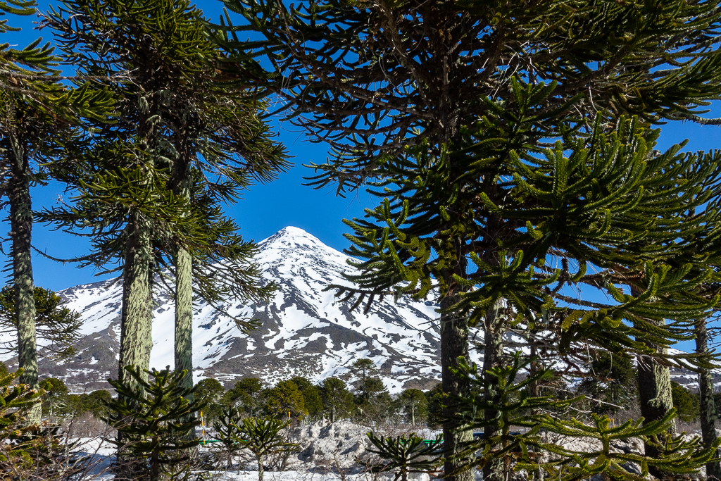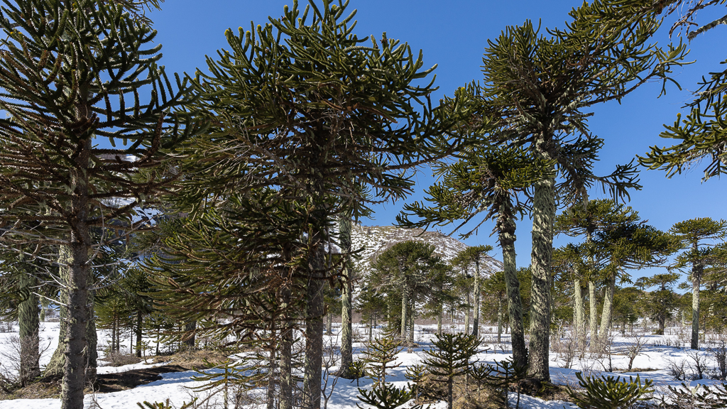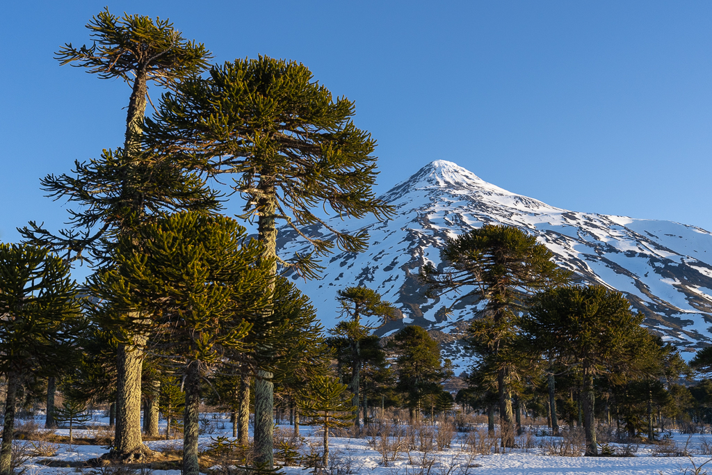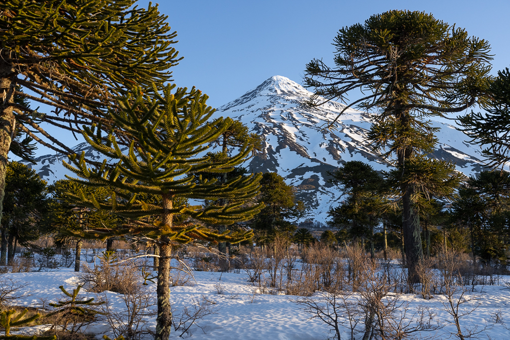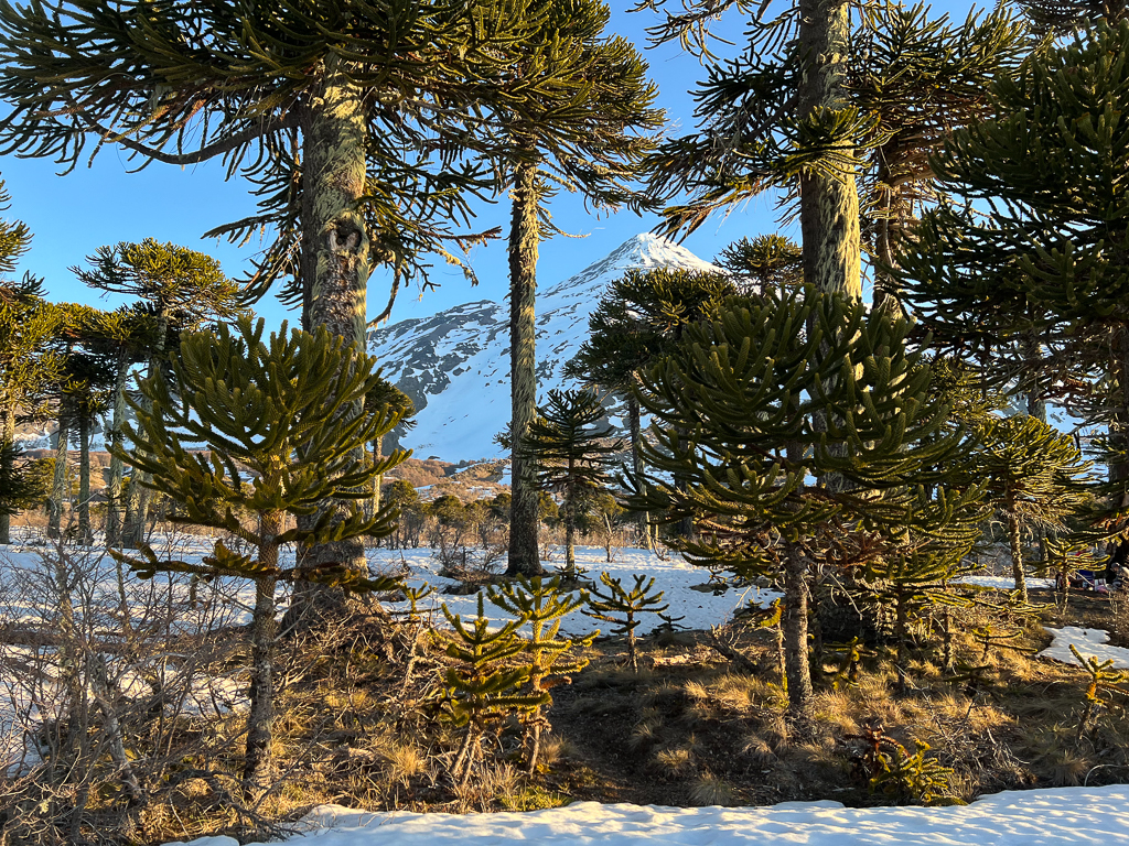 Shortly before you reach the border you enter a magnificent araucaria forest with the volcano Lanín in the background.