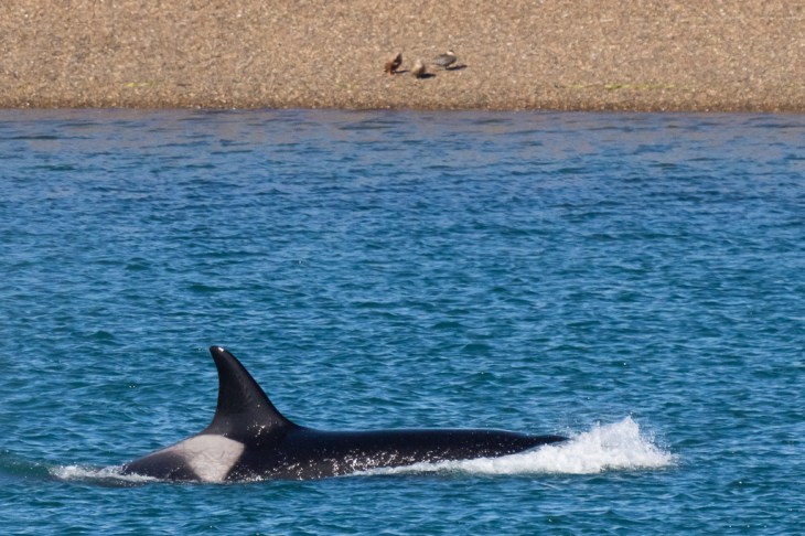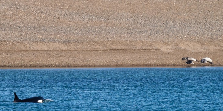 The Orcas enter the inlet for hunting sea mammals. At this time of the year, they are mainly looking for elephant seal pups.