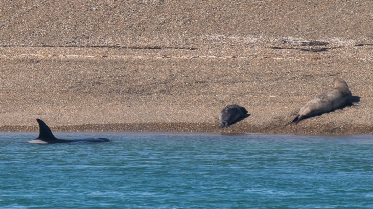 On the Valdés Peninsula, the Orcas have developed a fascinating hunting technique. They come very close to the shore and sometimes even try to catch their prey directly from the beach.