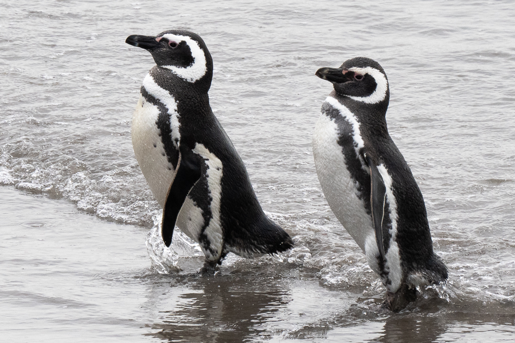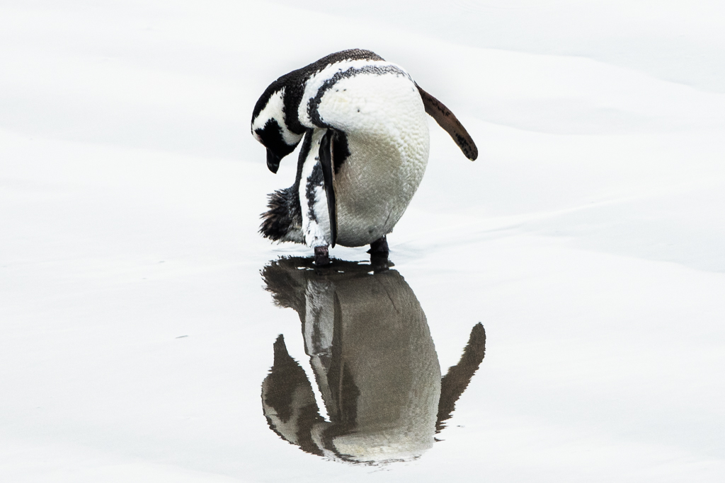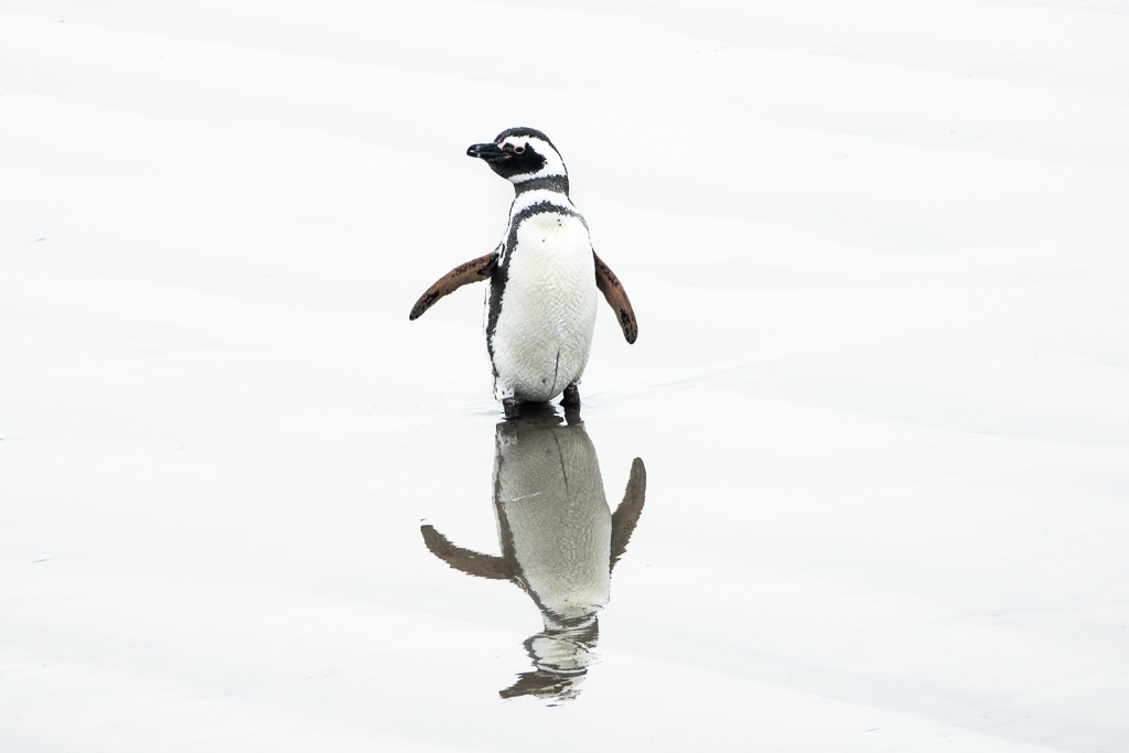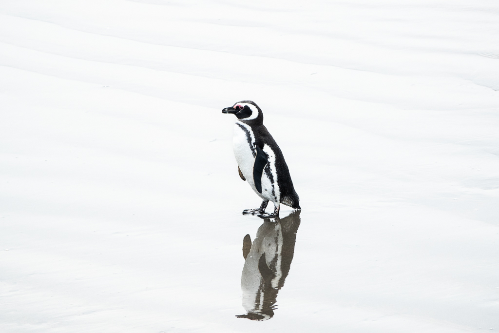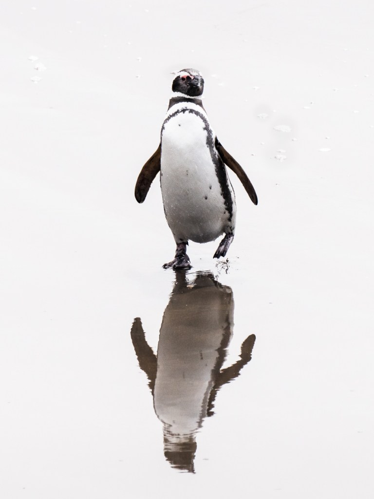 Under the right conditions, it is also possible to get some beautiful reflections of the penguins on the wet beach.