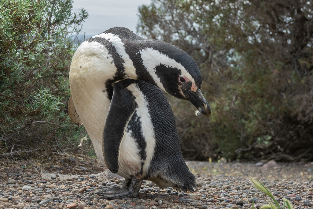 From there we did a day trip to Punta Tombo, a peninsula with the largest colony of Magellanic penguins in Argentina. The colony size varies between a few hundred thousand penguins and more than one million. It’s a two-hour drive from Playa Union to Punta Tombo, the last part on a gravel road. The entrance fee is 8€ per person. At the visitor center, you can find a small museum with information about the local wildlife.
