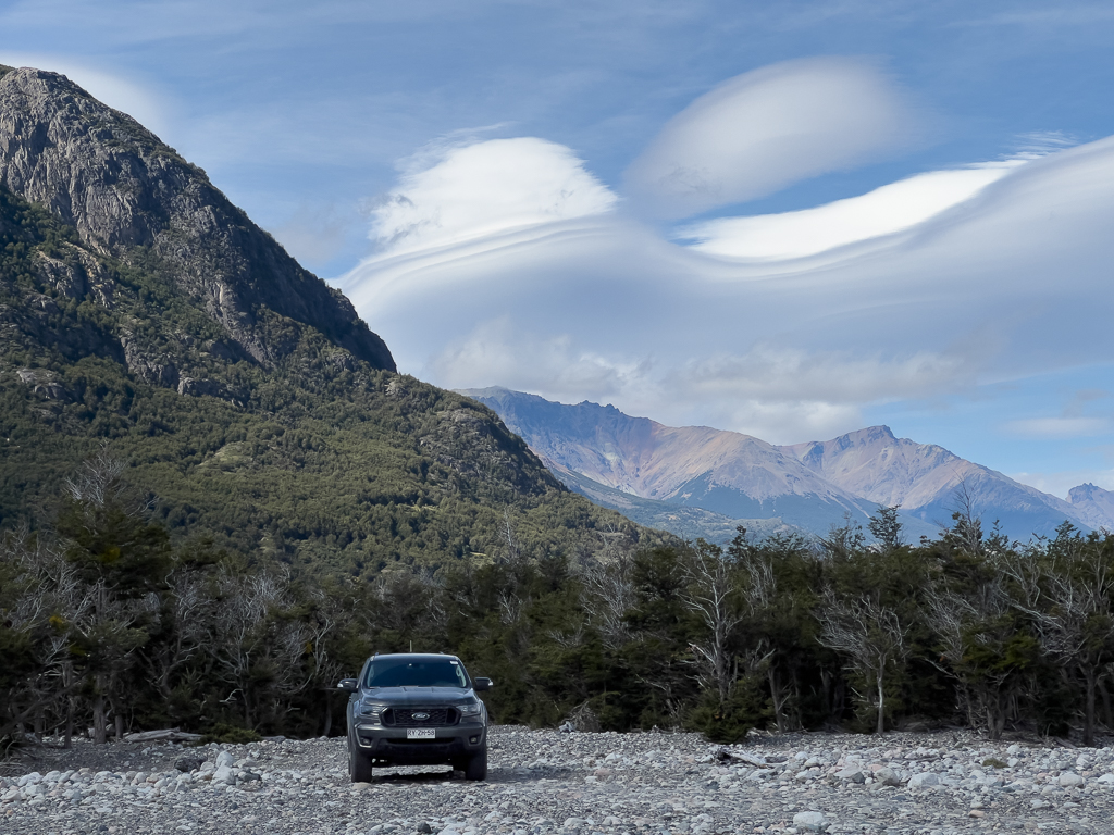 On our first excursion, we drove along the X-720 on the north shore of the Río Ibáñez to the Laguna Cerro Castillo trailhead and then another 10 km until the road suddenly ended at the Río Ibáñez.