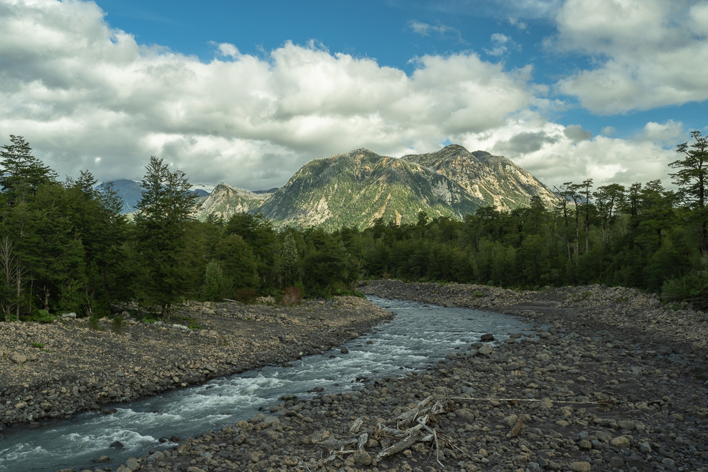 Rio Blanco, Volcán Michinmahuida and Lago Rio Negro