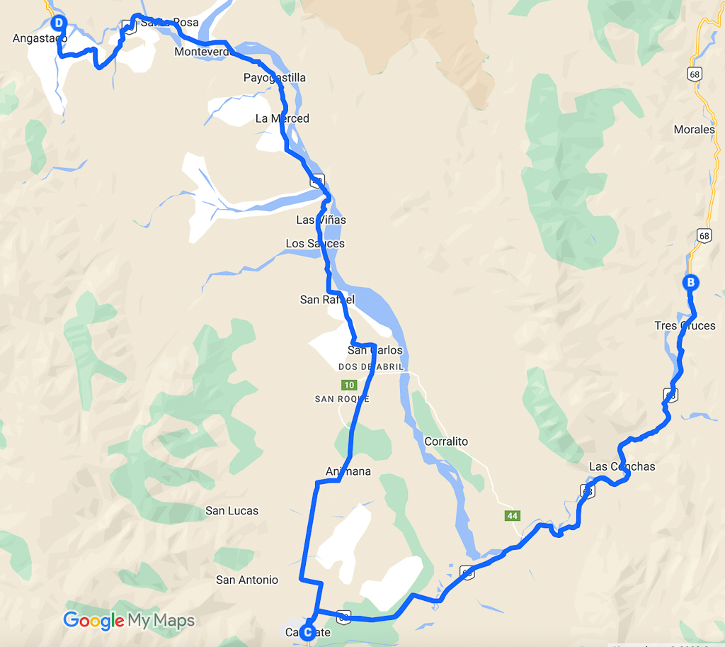 There are several distinctive rock formations along the Ruta 68. Here is a list of what can be found and the distance from Cafayate: