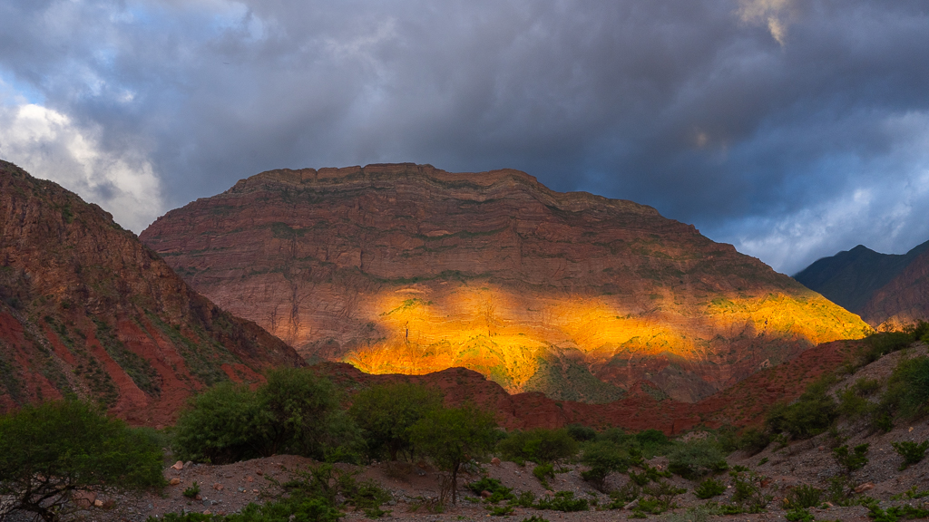 On our way back to Cafayate, the sun was already low above the horizon and the late afternoon light combined with the dark clouds was perfect for photography.