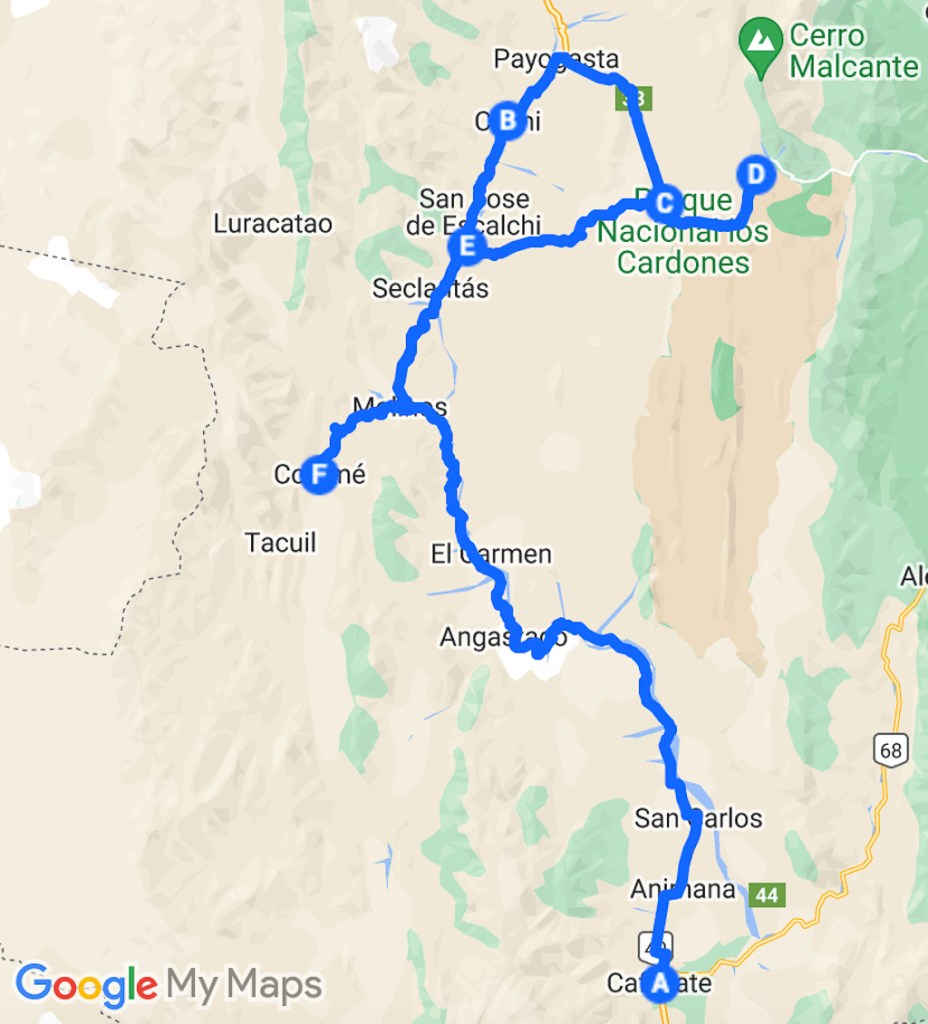 From Cafayate, we continued along the Ruta 40. Our next destination was Cachi, 160 km north of Cafayate.