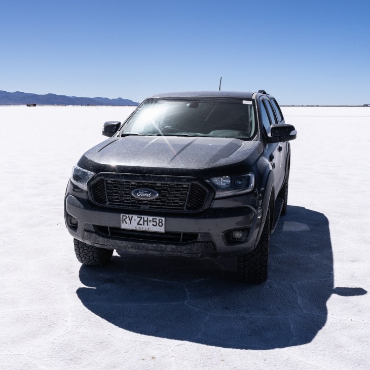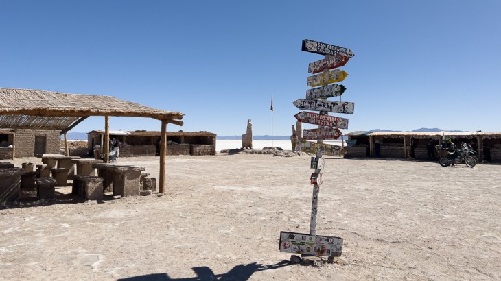 For a few € you could also drive in your own vehicle on the salt flats, accompanied by an obligatory official guide on a motorcycle who will show you a couple of interesting spots.
