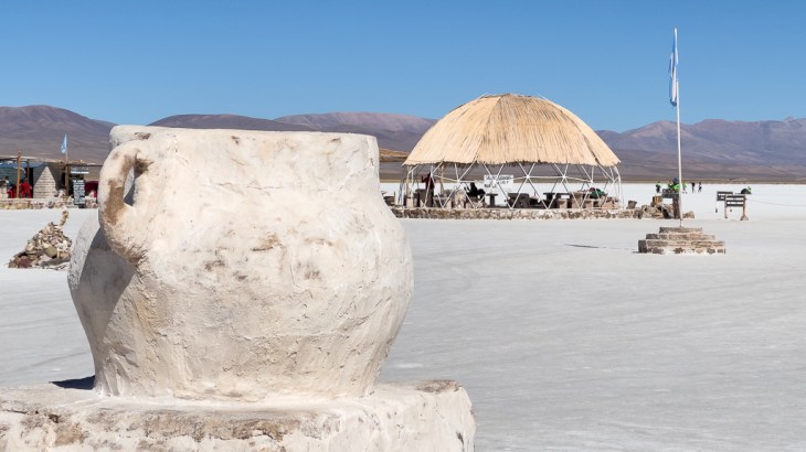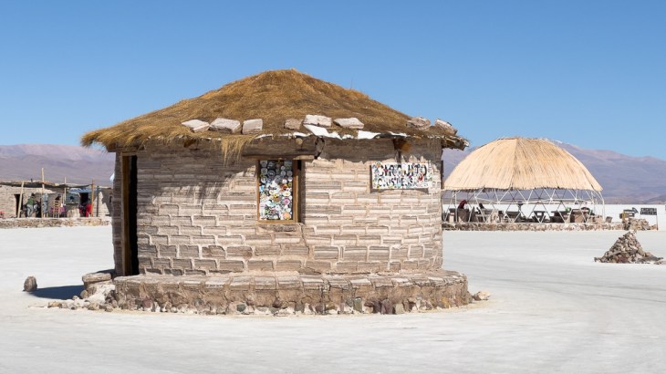 At the entrance to the salt flats are a couple of buildings and sculptures, all made of salt.