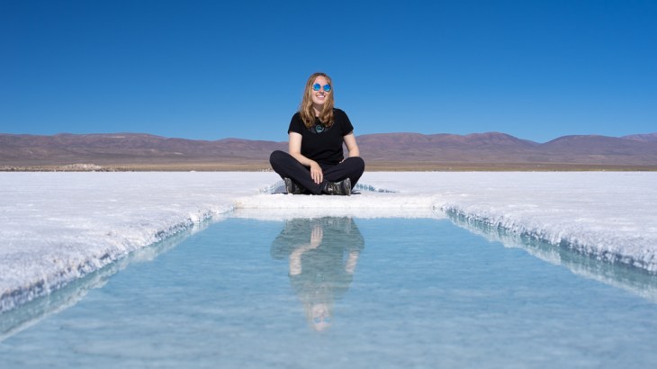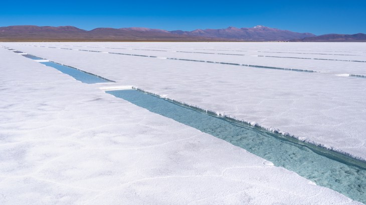 At a section on the salt flats, you can find man-made pools for salt mining (mainly for industrial applications).